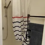I badrummet finns en separat toalett och en dusch samt badlakan och handdukar.
